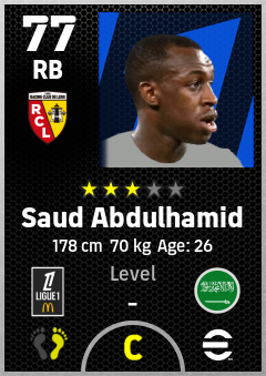 . Saud Abdulhamid is a Right Back footballer from Saudi Arabia who plays for Rc Lens in eFootball 2026.