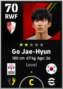 . Go Jae-Hyun is a Right Wing Forward footballer from Korea Republic who plays for Gimcheon Rw in eFootball 2026.