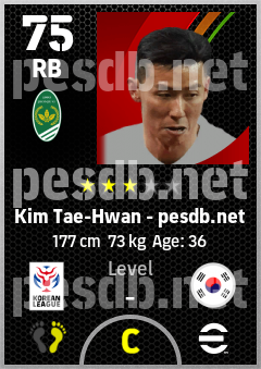 . Kim Tae-Hwan is a Right Back footballer from Korea Republic who plays for Jeonju G in eFootball 2026.