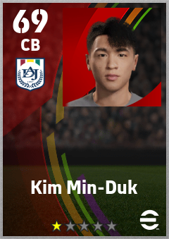 . Kim Min-Duk is a Center Back footballer from Korea Republic who plays for Daejeon Rgw in eFootball 2026.