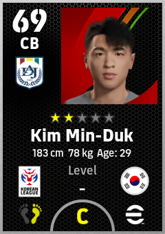 . Kim Min-Duk is a Center Back footballer from Korea Republic who plays for Daejeon Rgw in eFootball 2026.