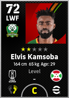 . Elvis Kamsoba is a Left Wing Forward footballer from Burundi who plays for Imigresen Fc in eFootball 2026.