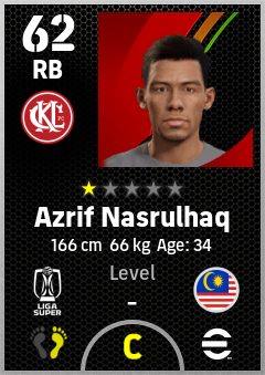 . Azrif Nasrulhaq is a Right Back footballer from Malaysia who plays for Kuala Lumpur City Fc in eFootball 2026.