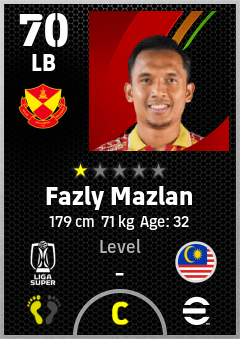 . Fazly Mazlan is a Left Back footballer from Malaysia who plays for Selangor Fc in eFootball 2026.
