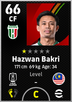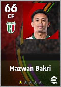 . Hazwan Bakri is a Center Forward footballer from Malaysia who plays for Kuching City Fc in eFootball 2026.