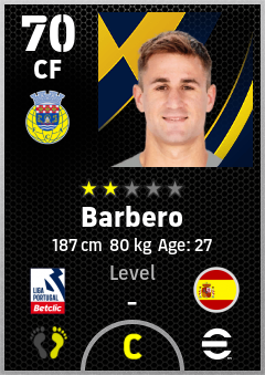 . Barbero is a Center Forward footballer from Spain who plays for Fc Arouca in eFootball 2026.
