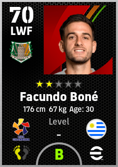 . Facundo Boné is a Left Wing Forward footballer from Uruguay who plays for Bogotá Vb in eFootball 2026.