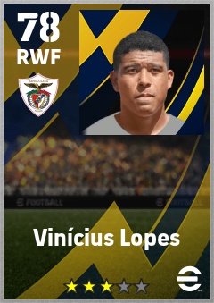 . Vinícius Lopes is a Right Wing Forward footballer from Brazil who plays for Cd Santa Clara in eFootball 2026.
