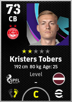 . Kristers Tobers is a Center Back footballer from Latvia who plays for Aberdeen Fc in eFootball 2026.