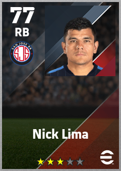 . Nick Lima is a Right Back footballer from United States who plays for San Jose Bb in eFootball 2026.