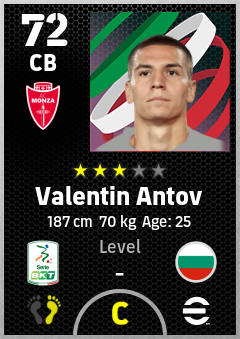 . Valentin Antov is a Center Back footballer from Bulgaria who plays for Monza Rb in eFootball 2026.