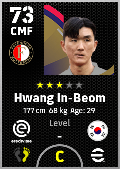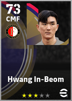 . Hwang In-Beom is a Center Midfielder footballer from Korea Republic who plays for Feyenoord in eFootball 2026.