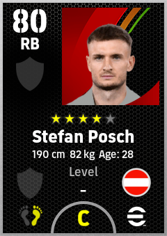 . Stefan Posch is a Right Back footballer from Austria who plays for Free in eFootball 2026.