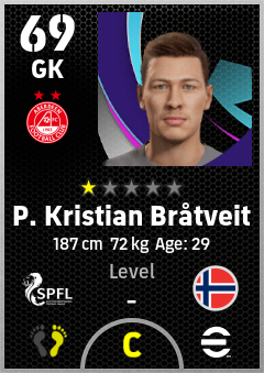 . P. Kristian Bråtveit is a Goalkeeper footballer from Norway who plays for Aberdeen Fc in eFootball 2026.