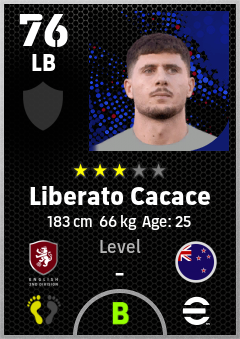 . Liberato Cacace is a Left Back footballer from New Zealand who plays for Wrexham Rw in eFootball 2026.