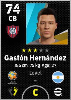 . Gastón Hernández is a Center Back footballer from Argentina who plays for Almagro Ar in eFootball 2026.