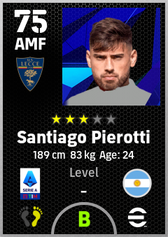 . Santiago Pierotti is a Attacking Midfielder footballer from Argentina who plays for Lecce Gr in eFootball 2026.
