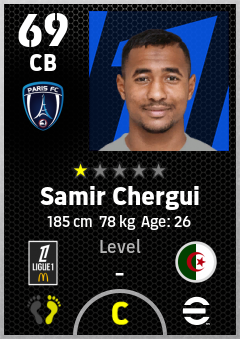 . Samir Chergui is a Center Back footballer from Algeria who plays for Paris Fc in eFootball 2026.