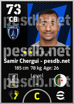 . Samir Chergui is a Center Back footballer from Algeria who plays for Paris Fc in eFootball 2026.
