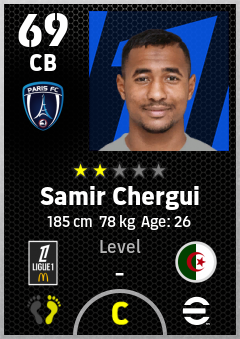. Samir Chergui is a Center Back footballer from Algeria who plays for Paris Fc in eFootball 2026.