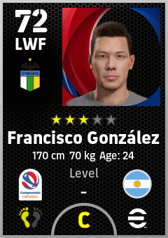 . Francisco González is a Left Wing Forward footballer from Argentina who plays for Rancagua A in eFootball 2026.