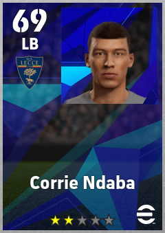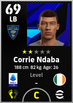 . Corrie Ndaba is a Left Back footballer from Republic Of Ireland who plays for Lecce Gr in eFootball 2026.