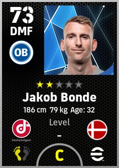 . Jakob Bonde is a Defensive Midfielder footballer from Denmark who plays for Odense Hb in eFootball 2026.