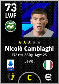 . Nicolò Cambiaghi is a Left Wing Forward footballer from Italy who plays for Bologna Rb in eFootball 2026.