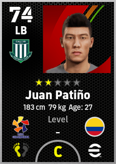 . Juan Patiño is a Left Back footballer from Colombia who plays for Cali Vb in eFootball 2026.