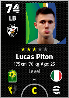 . Lucas Piton is a Left Back footballer from Italy who plays for Cr Vasco Da Gama in eFootball 2026.