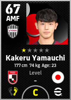 . Kakeru Yamauchi is a Attacking Midfielder footballer from Japan who plays for Vissel Kobe in eFootball 2026.