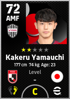 . Kakeru Yamauchi is a Attacking Midfielder footballer from Japan who plays for Vissel Kobe in eFootball 2026.
