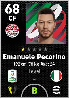 . Emanuele Pecorino is a Center Forward footballer from Italy who plays for Südtirol Br in eFootball 2026.