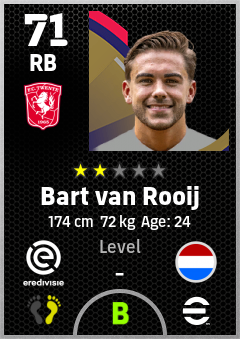 . Bart Van Rooij is a Right Back footballer from Netherlands who plays for Fc Twente in eFootball 2026.