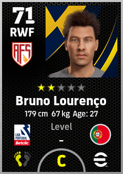 . Bruno Lourenço is a Right Wing Forward footballer from Portugal who plays for Avs Futebol in eFootball 2026.