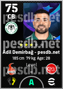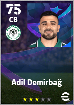 . Adil Demirbağ is a Center Back footballer from Türkiye who plays for Konyaspor in eFootball 2026.