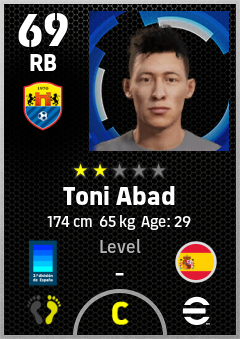 . Toni Abad is a Right Back footballer from Spain who plays for Huesca Ra in eFootball 2026.