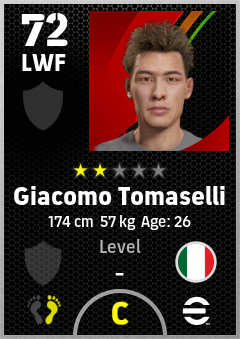. Giacomo Tomaselli is a Left Wing Forward footballer from Italy who plays for Free in eFootball 2026.
