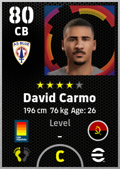 . David Carmo is a Center Back footballer from Angola who plays for Oviedo A in eFootball 2026.