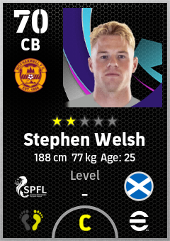 . Stephen Welsh is a Center Back footballer from Scotland who plays for Motherwell Fc in eFootball 2026.