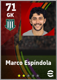 . Marco Espíndola is a Goalkeeper footballer from Colombia who plays for Cali Vb in eFootball 2026.