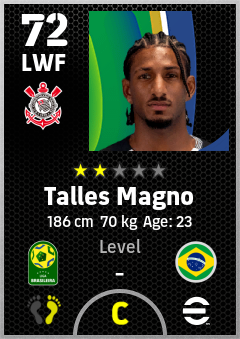 . Talles Magno is a Left Wing Forward footballer from Brazil who plays for Sc Corinthians Paulista in eFootball 2026.
