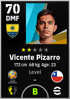 . Vicente Pizarro is a Defensive Midfielder footballer from Chile who plays for Rosario Aa in eFootball 2026.