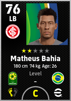 . Matheus Bahia is a Left Back footballer from Brazil who plays for Sc Internacional in eFootball 2026.