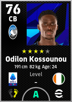 . Odilon Kossounou is a Center Back footballer from Côte D'ivoire who plays for Atalanta Bc in eFootball 2026.