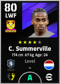. C. Summerville is a Left Wing Forward footballer from Netherlands who plays for West Ham Rb in eFootball 2026.