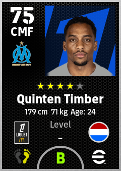 . Quinten Timber is a Center Midfielder footballer from Netherlands who plays for Olympique De Marseille in eFootball 2026.