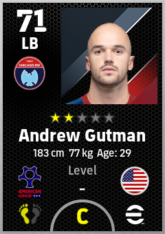 . Andrew Gutman is a Left Back footballer from United States who plays for Chicago Rw in eFootball 2026.