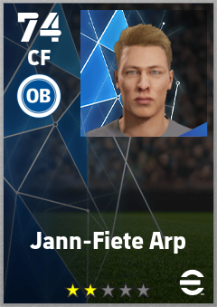. Jann-Fiete Arp is a Center Forward footballer from Germany who plays for Odense Hb in eFootball 2026.