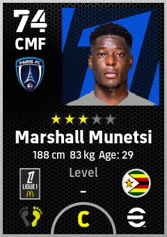 . Marshall Munetsi is a Center Midfielder footballer from Zimbabwe who plays for Paris Fc in eFootball 2026.